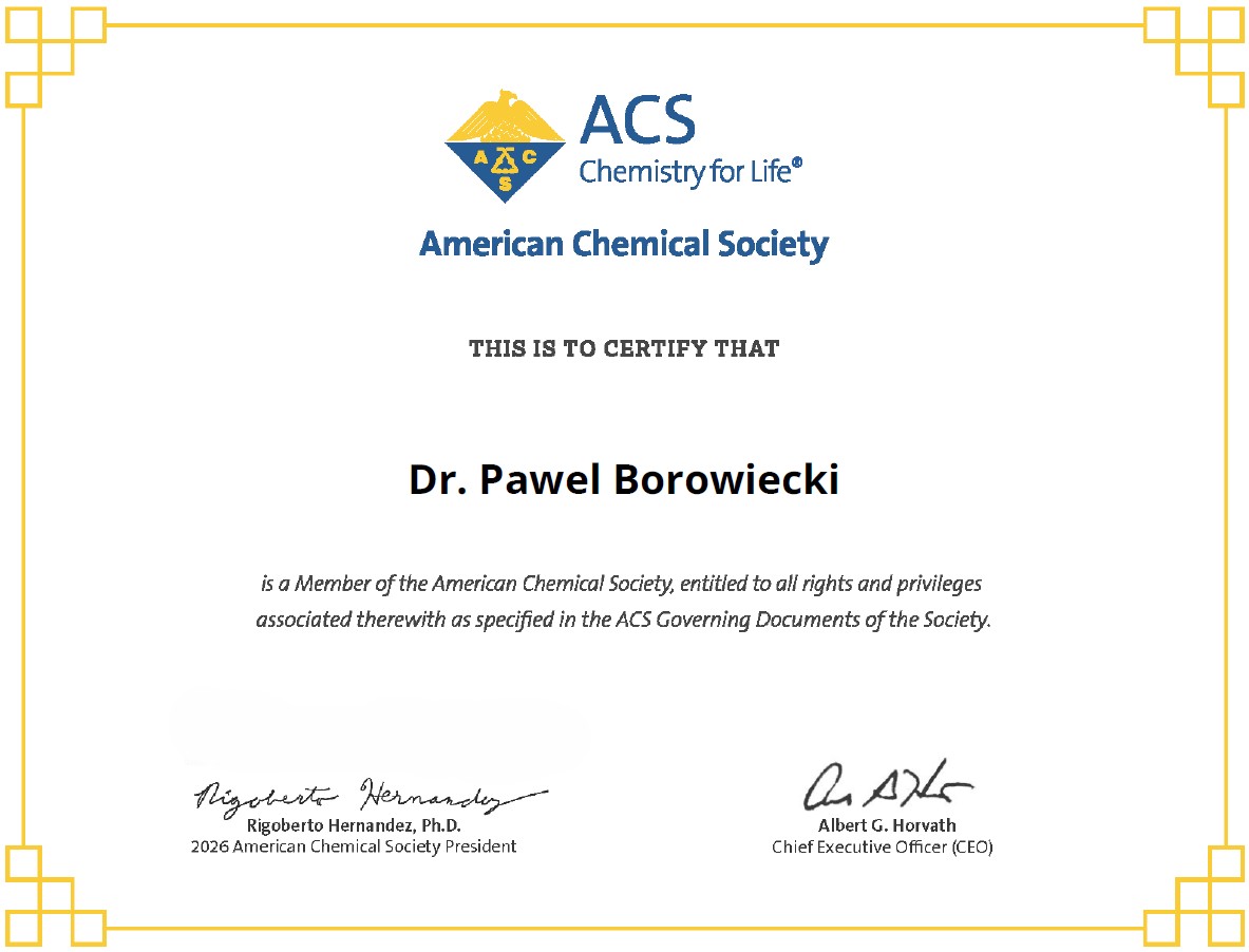 We are happy to announce that Dr. Borowiecki has been confirmed as a Premium Member of the American Chemical Society (ACS)!